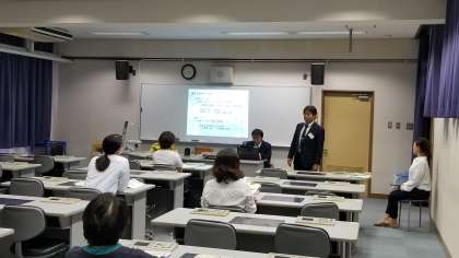 LL教室での大阪商業大学高校、金光藤蔭高校の説明会の様子です。それぞれの学校の特徴など詳しく説明していただきました。