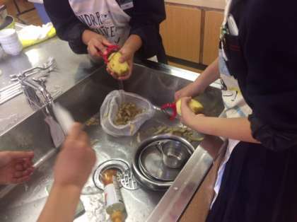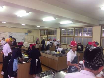 10月16日、2年家庭科の授業の様子です。この時間は調理実習です。楽しそうに準備が始まりました。