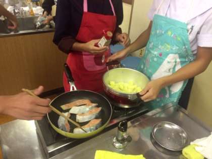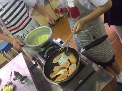 いい焼き色がついてきました。どのグループも順調に進んでいます。さぁ味はどうかなぁ。