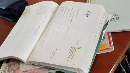 2年国語の授業の様子です。三好達治の『大阿蘇』を、つぎつぎと生徒が朗読していきます。