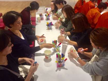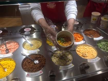 カップに好きなデザインをして、スープの味や具をトッピングします。醤油味やカレー味など迷います。具はたくさんありすぎて困ります。4種類選べます