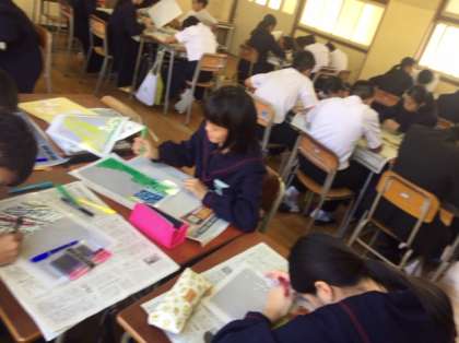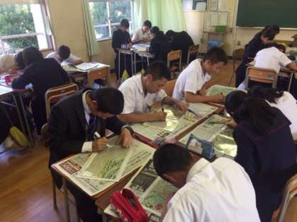 一コマ一コマ塗りつぶしていくのは、大変ですね〜。実習生も生徒と一緒に頑張っています。3組の様子です。
