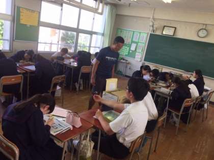 集中力を高めるためにロッカーの方を向いて作業をしている生徒もいます。4組の様子です。