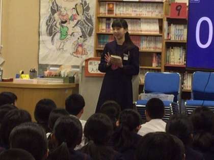 4番目のバトラーは1組の代表です。紹介する本は「贖罪(しょくざい)」です。難しい題の本ですが、しっかりと内容を伝えようとしました。