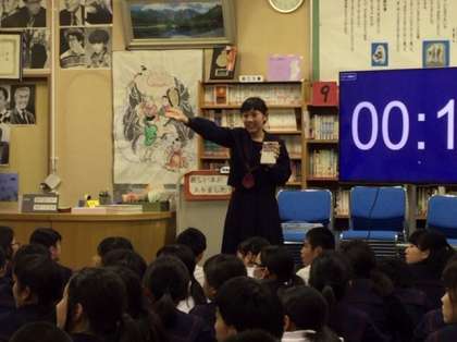 6番目のバトラーは同じく3組の代表です。紹介する本は「図書館戦争」です。本を読めなくなるのはイヤだという思いがこもった発表でした。
