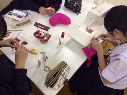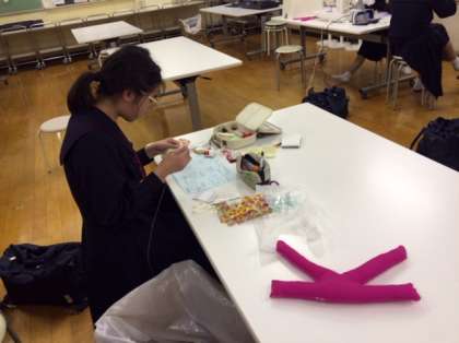 被服室では家庭科部が文化祭に向けて活動しています。