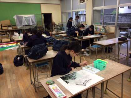 美術室では美術部が文化祭に向けて活動しています。