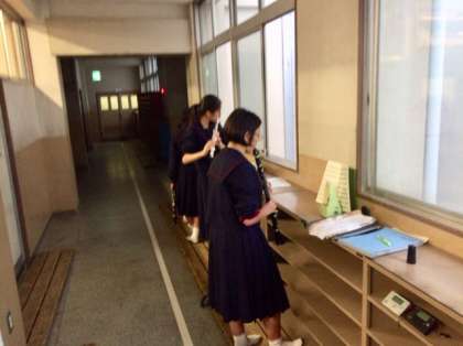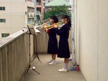 吹奏楽部は廊下や体育館横など様々なところでパート練習をしています。