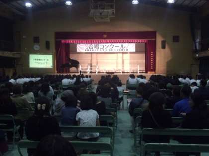 10月27日、土曜授業です。1年生は合唱コンクールを行いました。保護者席は100名を軽く超える盛況ぶりです。各クラス共通の課題曲は「Un limited(アンリミテッド)」です。さあ練習の成果を出しましょう。司会進行はすべて生徒です。