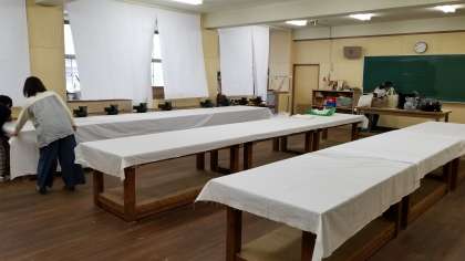 技術室の準備の様子です。PTAバザーの準備をしています。