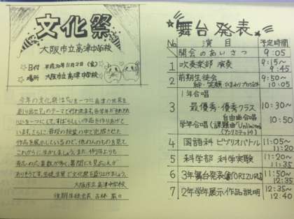 11月2日、平成30年度文化祭を開催します。舞台発表は9時5分開会のあいさつが行われます。保護者の皆様方の多数のご来場をお待ちしています。