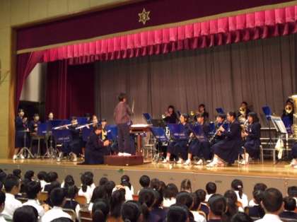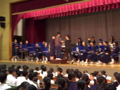 次は小学生の中から一人選びます。これまたたくさんの手があがりました。中学生に教えてもらって、さぁ本番です。よくできました。楽しかったですね〜。