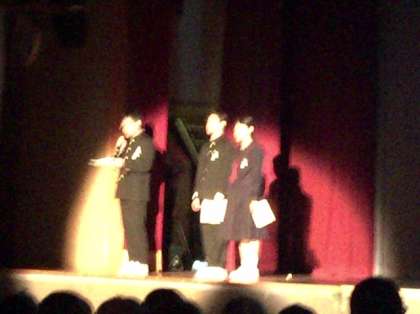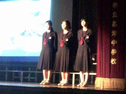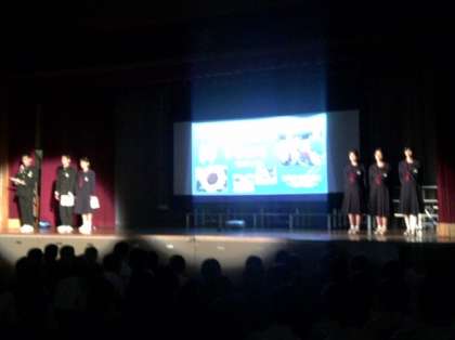 前期生徒会役員が「ひまわりプロジェクト」をはじめ、これまでの取り組みを発表しました。
