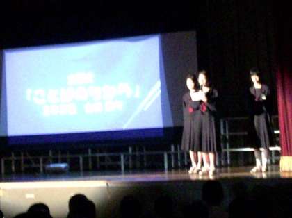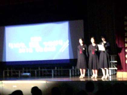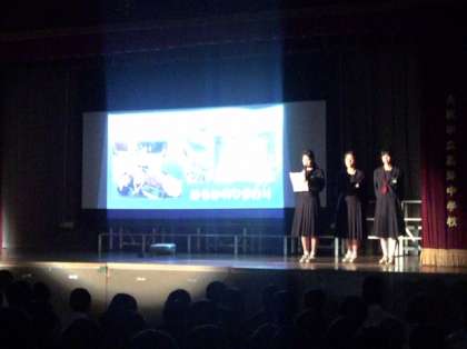 防災やスピーチコンテストへの参加などの取り組みを発表し、役員二人が自らの主張を読み上げました。