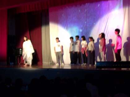 異空間で折鶴千代子に出会い、中学生たちは驚く。平和について尋ねられる。
