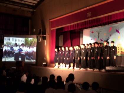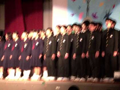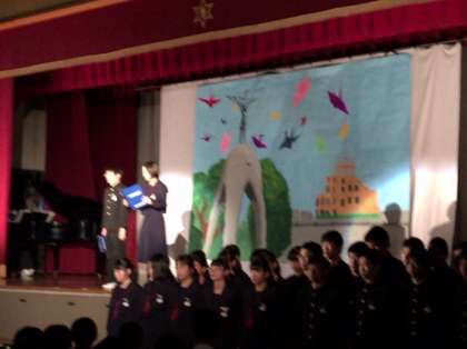 広島修学旅行での平和宣言。コーラス隊が「折鶴」を合唱する。
