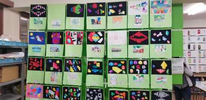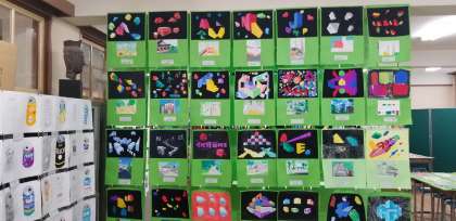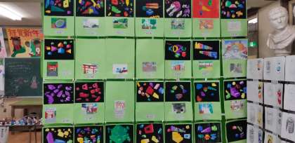 美術室の展示作品です。3年生の作品です。立体的に見えますか。