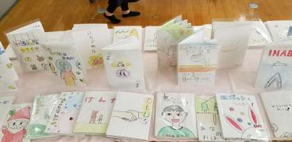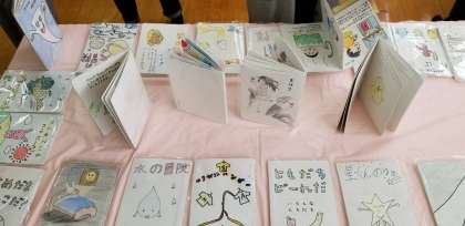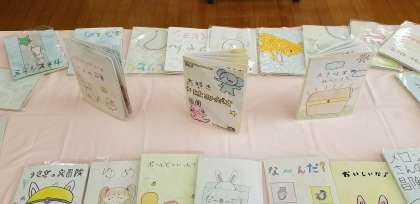 被服室の展示作品です。3年生絵本の作品です。来週ふれあい保育に校下幼稚園にいきますね。小さい子供の気持ちを考えた作品が多いですね。