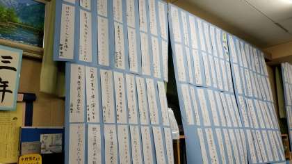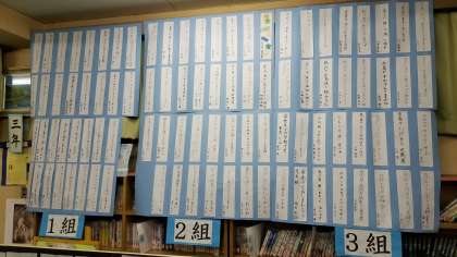 図書室の展示作品です。3年生の俳句の作品です。なかなか面白い作品が並んでいます。