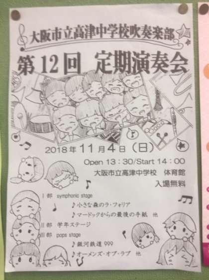 明日11月4日14時〜、本校体育館において第12回定期演奏会を開催します。多数の方々のご来場をお待ちしています。