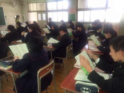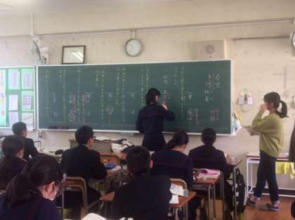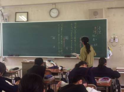 2年国語の授業の様子です。杜甫が詠んだ漢詩「春望」を音読し、現代語訳・口語訳・文法(五言律詩・押韻の確認など)について学習しました。