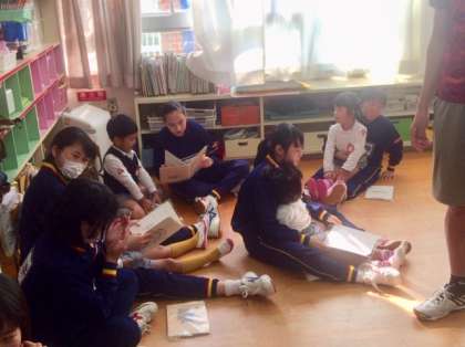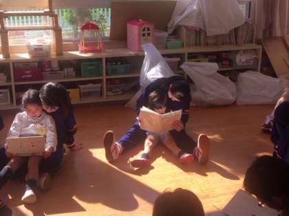 たくさん絵本があってうれしそうですね〜。いろいろなお話が聞けて良かったですね〜。