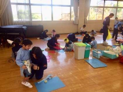 リズム室では衣装づくりが行われています。うまく出来るかなぁ。