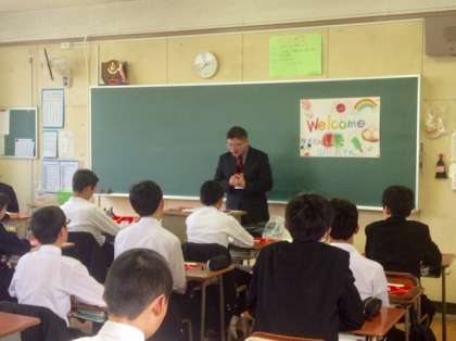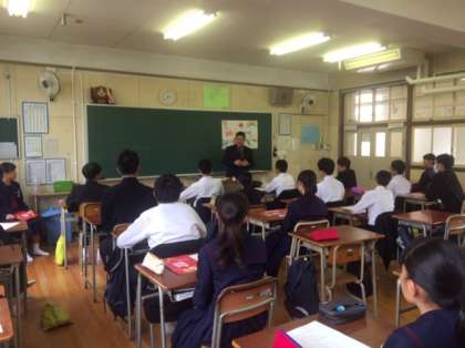 2年3組の教室では「株式会社蓬莱」の方から飲食業についてお話していただきました。