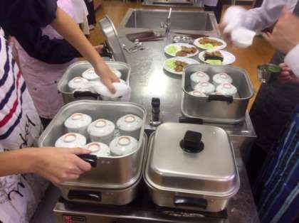 2年家庭科の授業の様子です。調理実習を行いました。今日のメニューは豚肉の生姜焼き・茶碗蒸し・ご飯です。美味しそうに出来上がりました。お昼の給食、食べれるかなぁ。