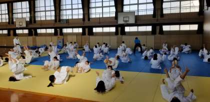 柔道着の正しい着方の確認と受け身の練習をしました。