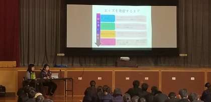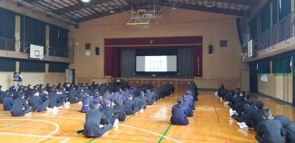 本日5時間目体育館にて、看護師講話がありました。命の大切さからエイズについて学びました。