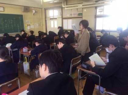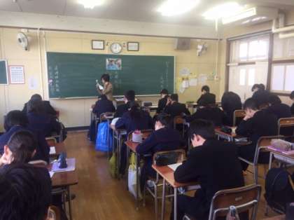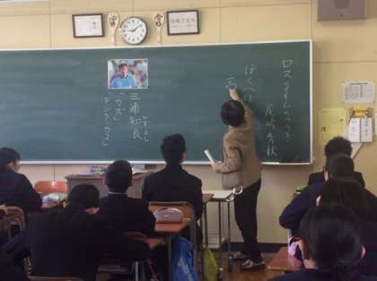3年道徳の授業の様子です。「ロスタイムのつづき」という資料を使いました。この時間では、サッカー選手・三浦知良と出会い、彼の挫折や失意を乗り越える前向きな姿から自分の理想に向かって努力し、人生を意欲的に豊かに生きようとすることを学んで欲しいと考えています。
