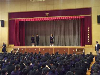 また、本日の全校集会では、生徒手帳の改訂について、全校生徒の意思確認をしました。生徒会執行部のみなさん、生徒全員のまとめ役は大変ですが、これからもお願いしますね。