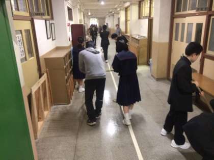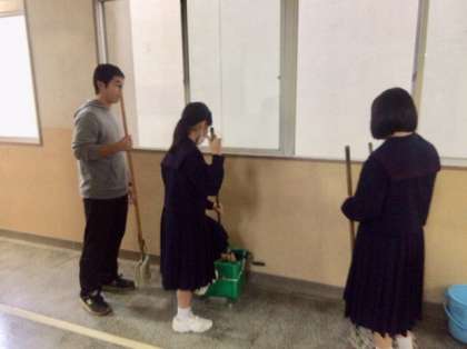 本校には毎週木曜日に大阪教育大の4回生の方が1人ボランティアとして来てくれています。校内の様々な仕事の補助をしてくれています。大清掃も生徒たちと一緒に行ってくれました。