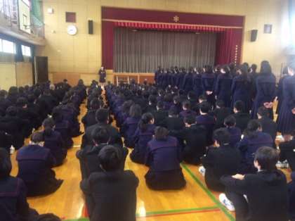 12月10日、全校集会を行いました。校長先生から12月の学校目標「締」に関連した話がありました。「締」には様々な意味があります。気持ちや態度を緊張させる。物事の最後にまとまりをつける。取り決めや話をまとめる。などです。しかし、ただまとめるだけではなく、それを次につなげるということが大切です。「目の前に落ちているゴミを拾えない人間にチャンスは拾えない。」という言葉があります。今の自分、現状を整理して次につなげて行ってほしいと思います。学期末の懇談はいいチャンスはなので成績だけではなく、生活全般を見つめ直してほしいと思います。