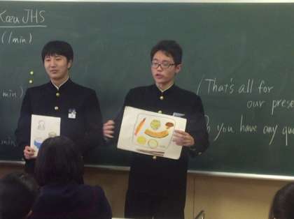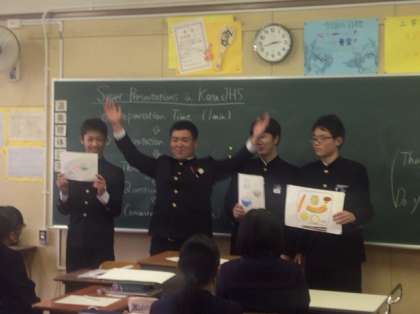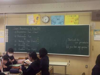 3年英語の授業の様子です。「Super-presentations in Kozu JHS」が始まりました。これまでグループで決めたテーマについてタブレットなどで調べた内容を英語で発表します。さて、どんなプレゼンになるでしょうか。