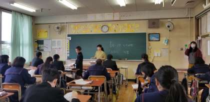 本日2時間目、国語の相互参観授業がありました。書写の授業で「喜びの声」と行書体で書く練習をしました。うまく書けたかな?