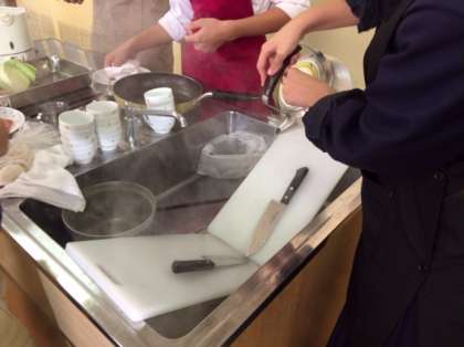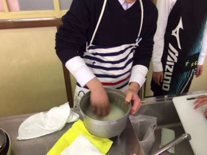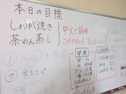 12月14日1・2時間目、2年生家庭科において相互参観授業を行いました。調理実習です。献立は、豚肉のしょうが焼き・茶わん蒸し・ごはんです。まずは様々な準備をします。