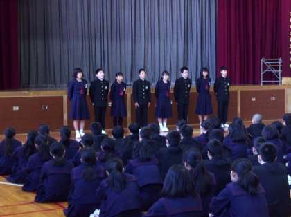 話の最後に担任・副担任の先生へのメッセージがありました。皆さん、よくまとまった話が出来ていたと思います。写真は上から3組、4組、委員長全員です。