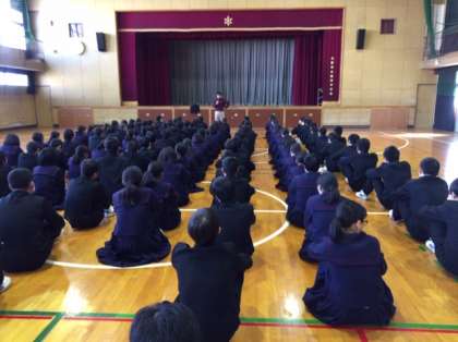3時間目、3年学年集会を行いました。最初に竹島先生から受験生としてこの時期に心がけておくべきことや日常の生活のことなどについての話がありました。