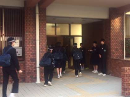 12月25日、大変いい天気になりました。2学期最後の日です。皆さん、元気に登校してきます。今日も一日頑張りましょう。