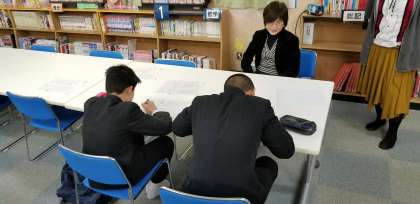 3年生が図書室で勉強しています。進路に向かって頑張ってますね。