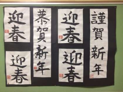 図書室前に書道部の新春の作品が掲示されています。今年の活動も頑張りましょう。