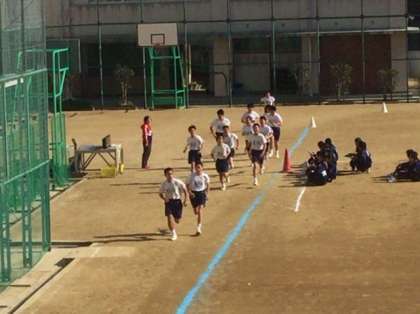 2年体育の授業の様子です。持久走が始まりました。7分間走をペアを組んで行いました。さぁ、どのくらいの距離を走れたのでしょうか。