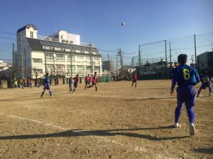 前半、相手キーパーがシュートをはじいたこぼれ球を上手く合わせて1点を先制。そのまま前半終了。しかし、後半に入って守りにまわることが多く劣勢でしたが、なんとか守りきり、1ー0で勝ちました。よく頑張りました。おめでとうございます。次の試合も頑張りましょう。