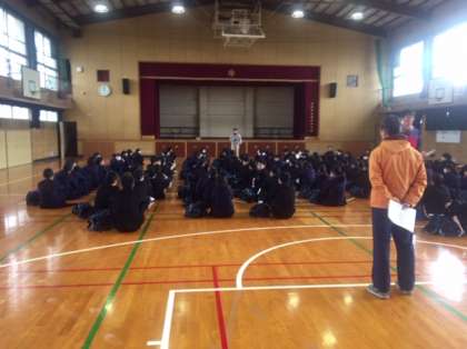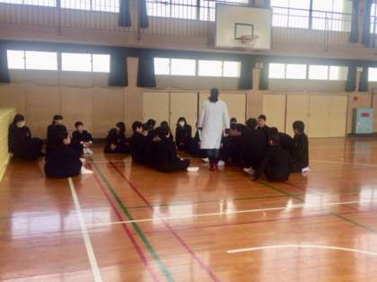 学年末テスト2日目終了後、体育館において明日の私立高校出願に向けて服装・持ち物などの確認をし、そのあとグループに分かれて出願に関する事前指導を行いました。