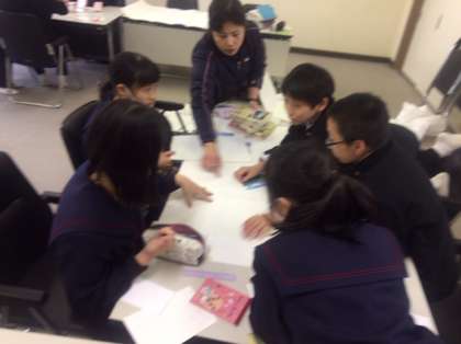 1年生は午後、国際交流の取り組みを行いました。グループに分かれて調べ学習です。
