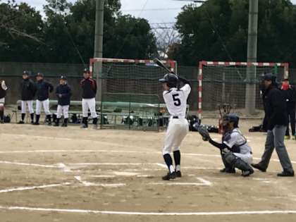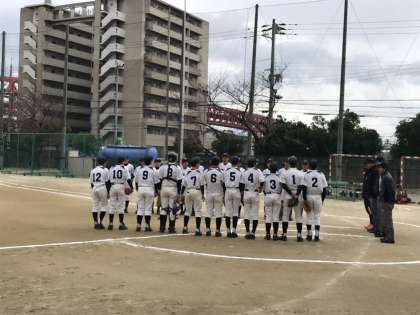 1月26日、住吉高校出身の顧問の学校が集まって大会を開催しています。今日の相手は上町中です。タイブレークの末、4ー3で勝ちました。よく頑張りました。おめでとうございます。