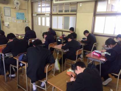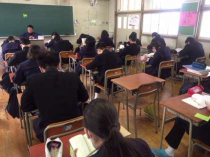 一人一人が考えたメッセージを書いています。3・4組の様子です。