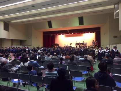 夕陽丘高等学校の単独演奏の後、中学校と高等学校の合同演奏で、おおいに盛り上がりました。